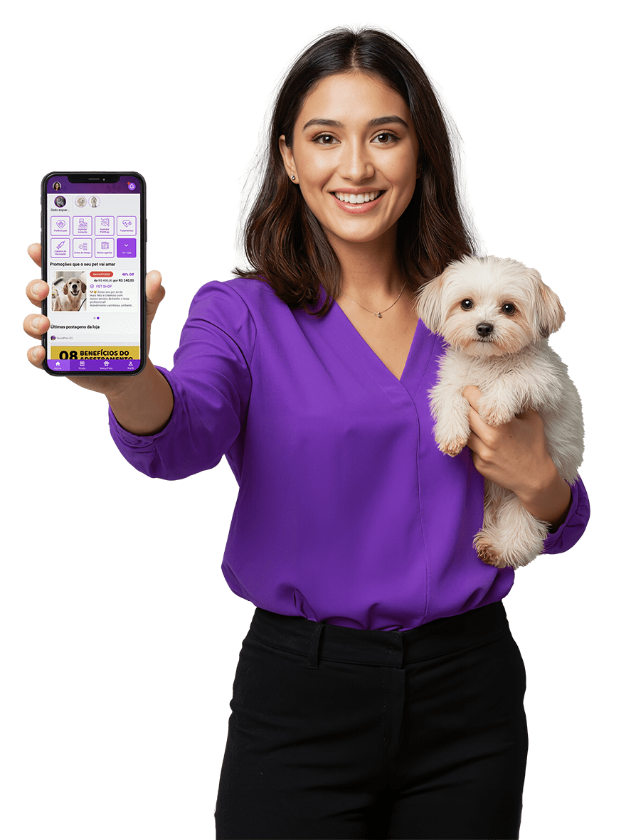 Tudo isso com um aplicativo exclusivo para os tutores, que melhora o relacionamento e fideliza seus clientes.