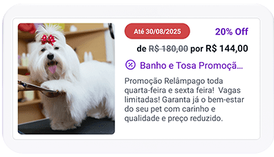 Impulsione suas vendas e engaje mais clientes oferecendo combos de serviços e ofertas direto no aplicativo dos tutores.