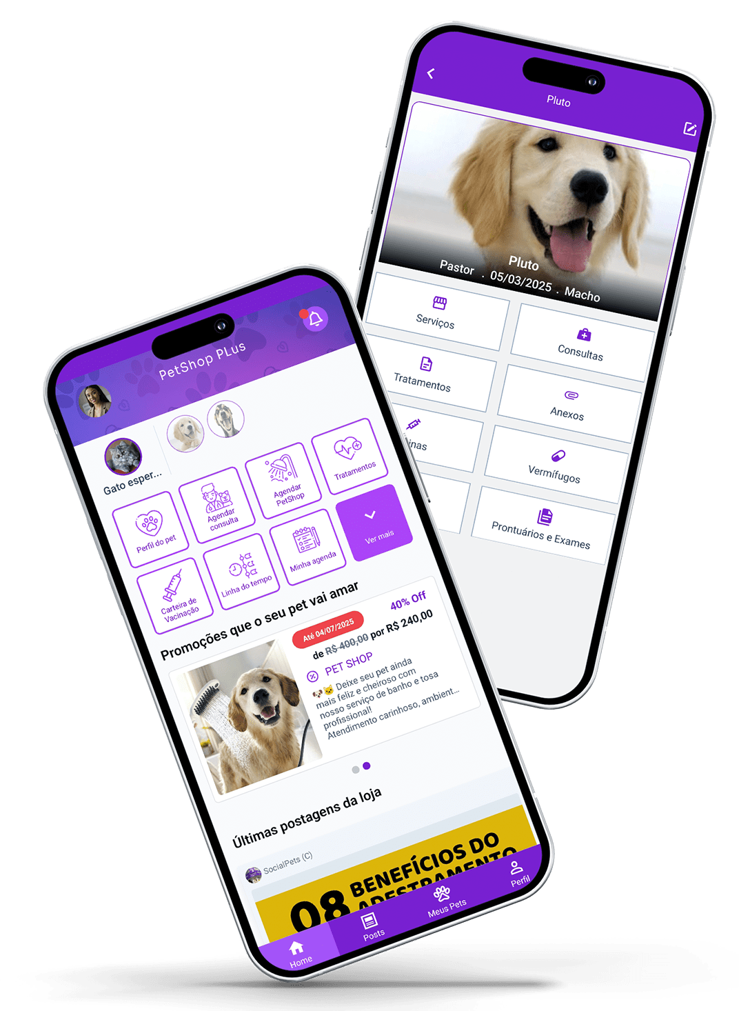 App personalizado com agendamentos, histórico do pet, promoções e muito mais.