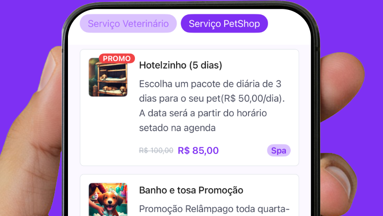 Experimente o app sem compromisso e conheça todos os recursos pensados para facilitar sua rotina — seja você tutor ou petshop. Em poucos cliques, você se conecta, organiza e acompanha tudo com praticidade.