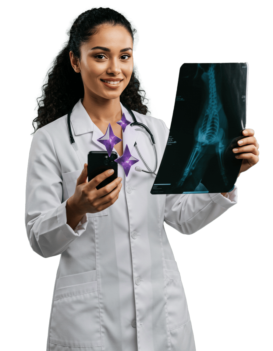 Sua experiência e raciocínio clínico aliado com inteligência artificial trazendo mais precisão na análise de exames, imagens e anamnese.